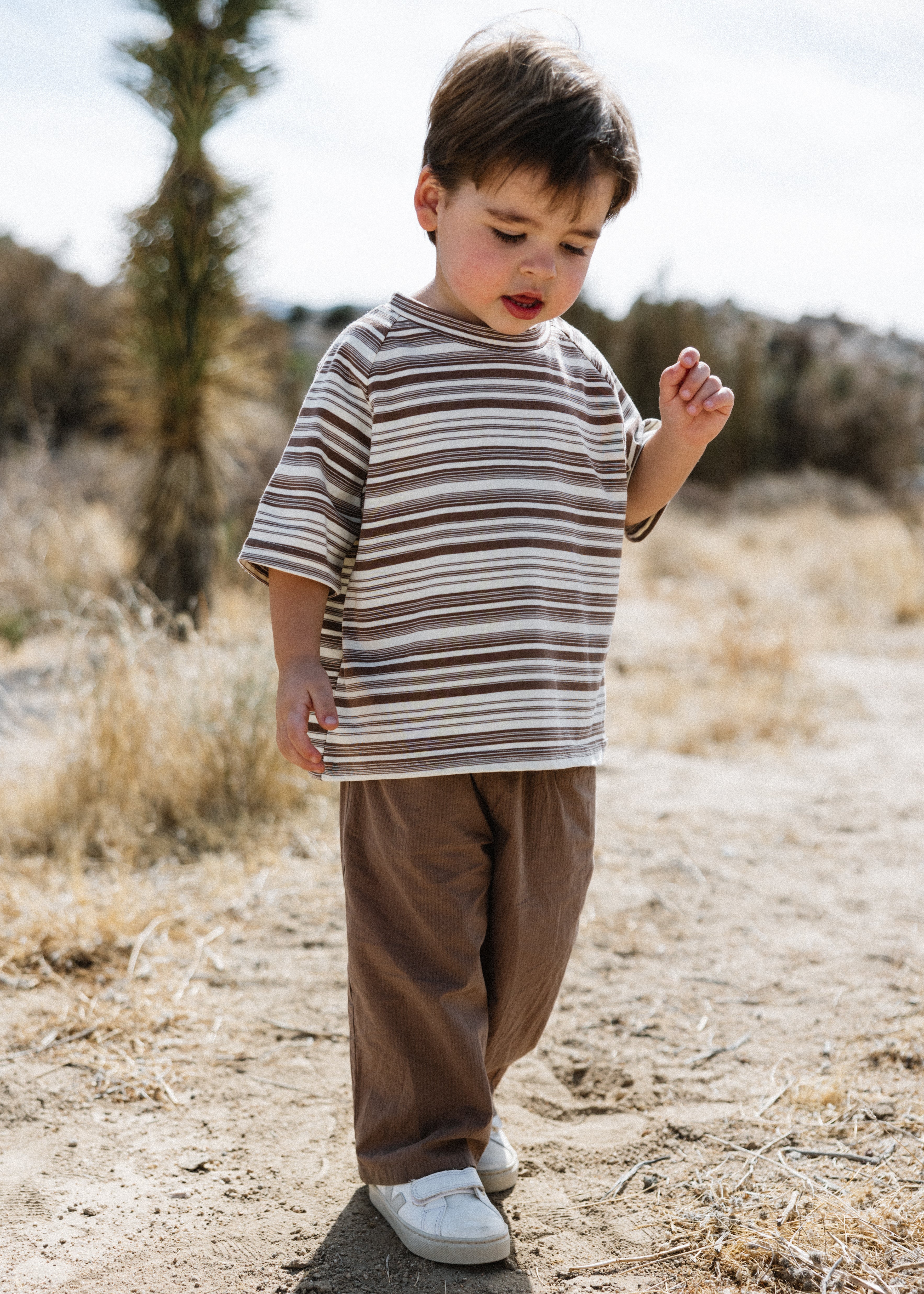 Baggy Tee- Striped- Brown