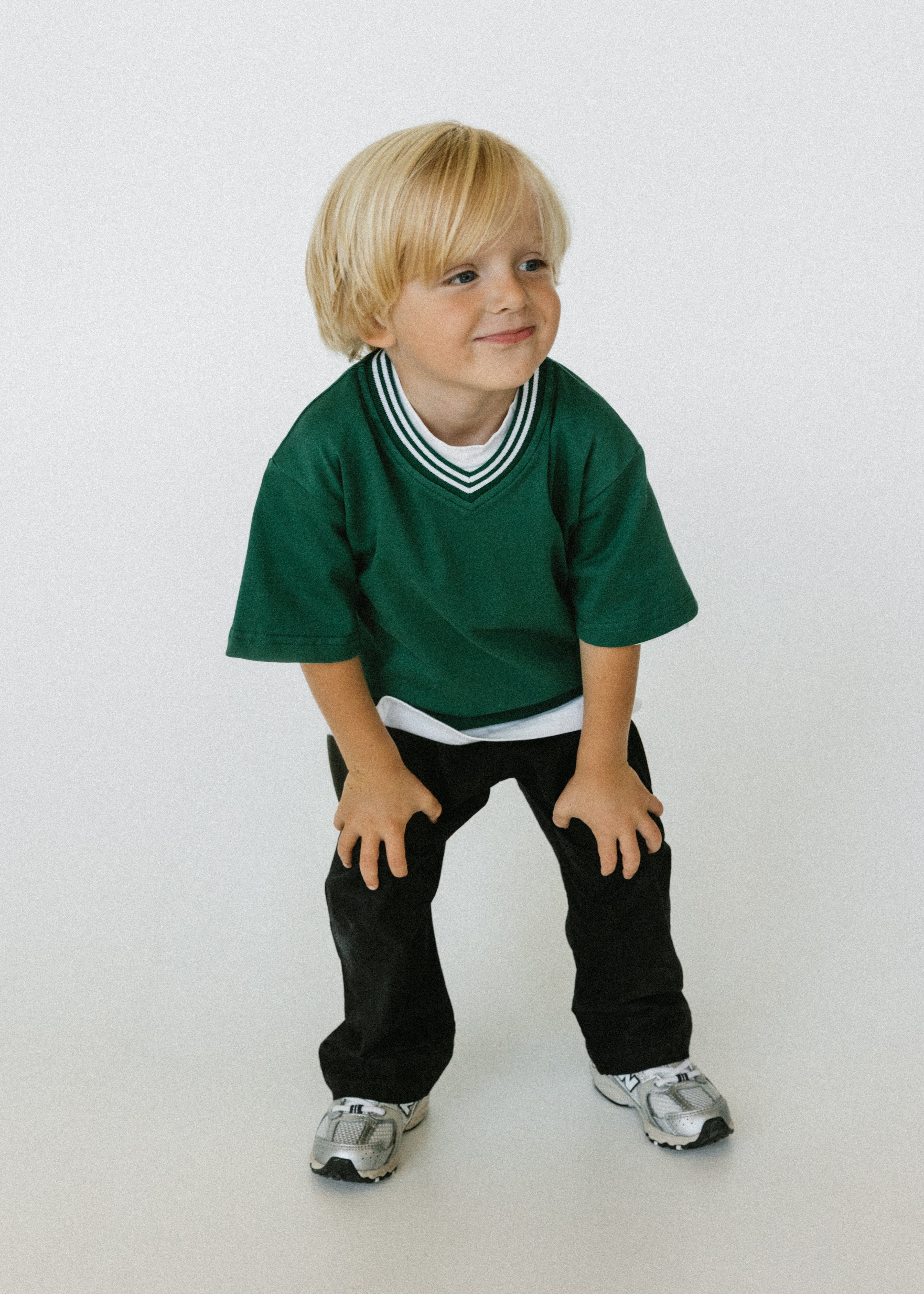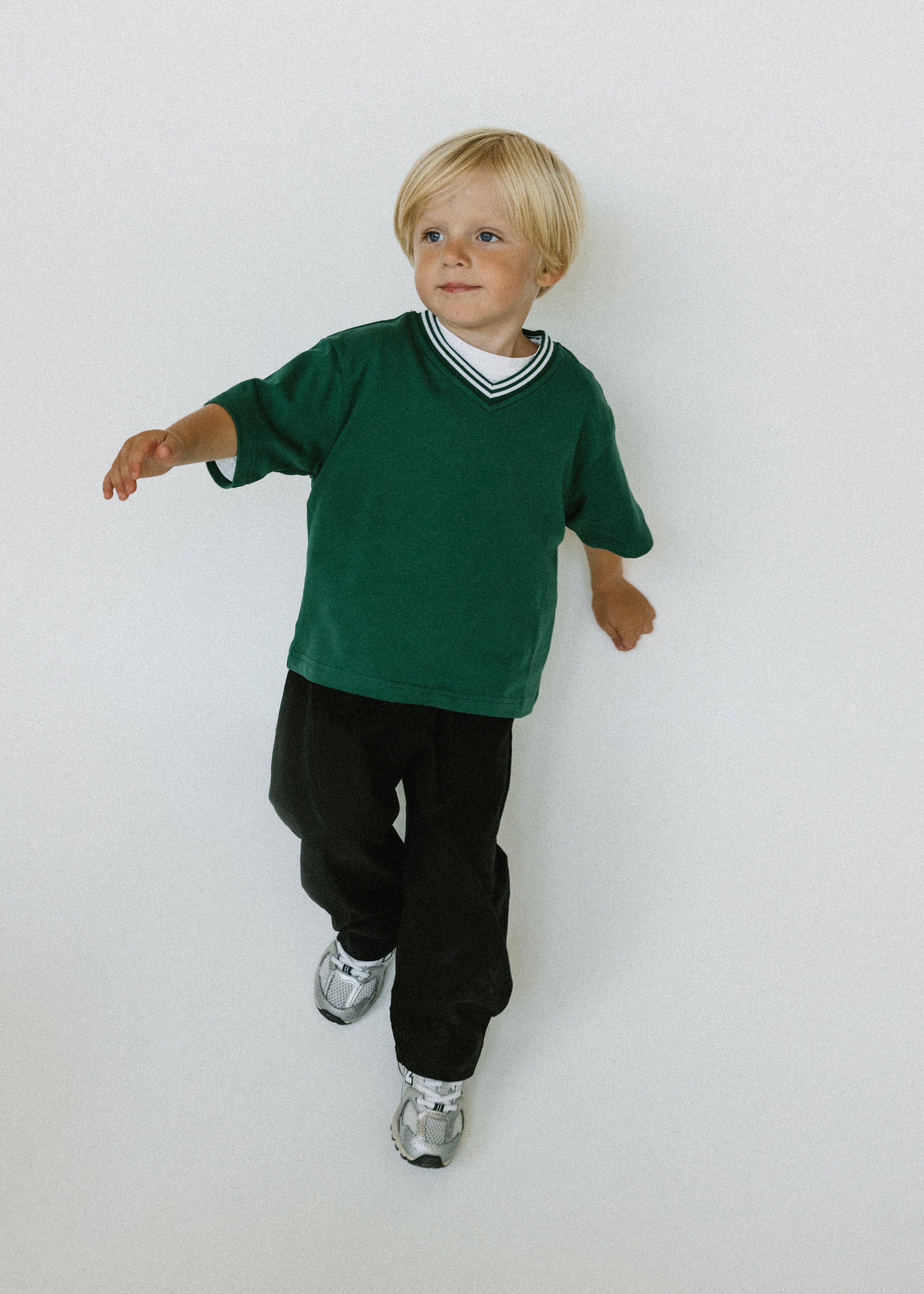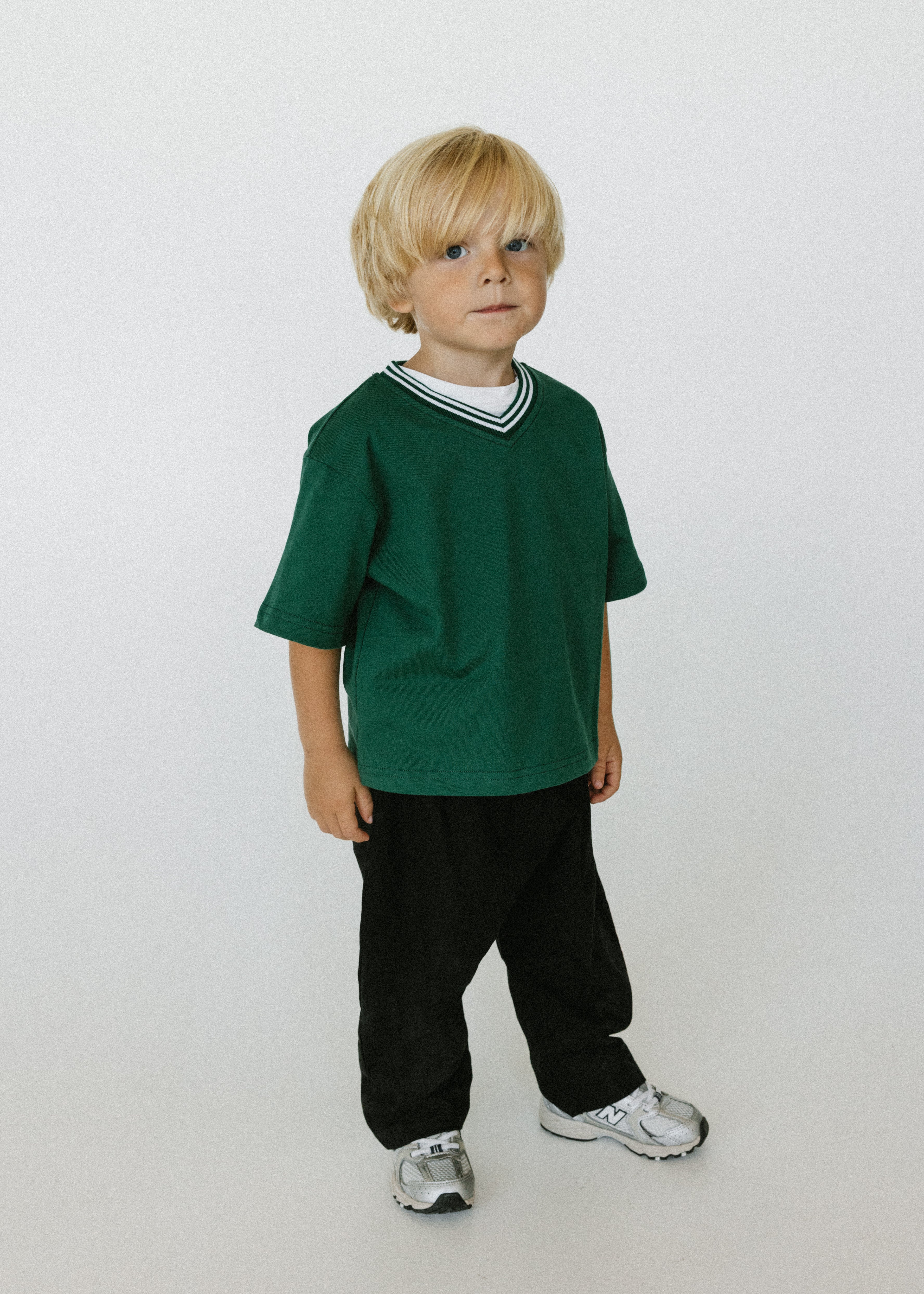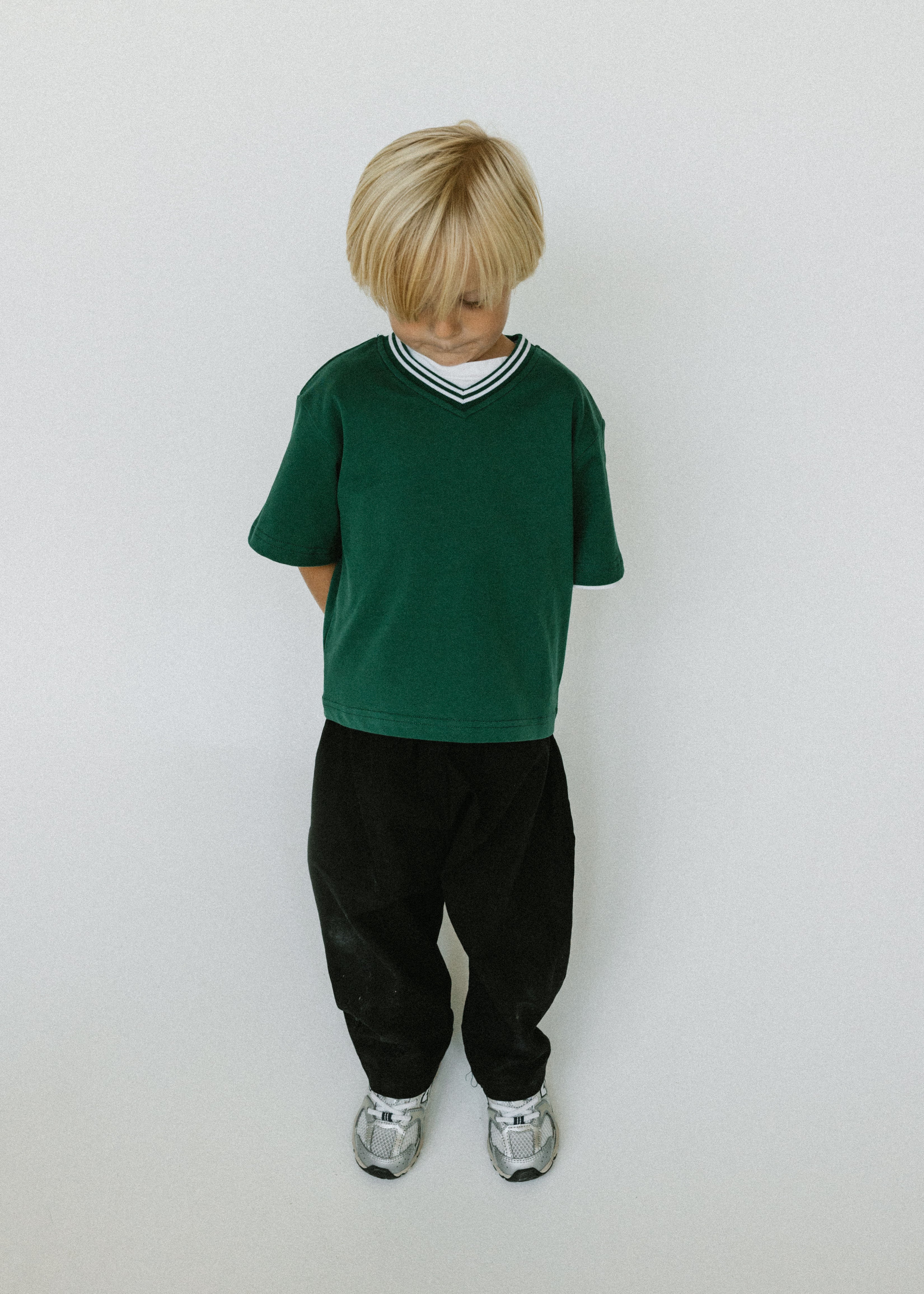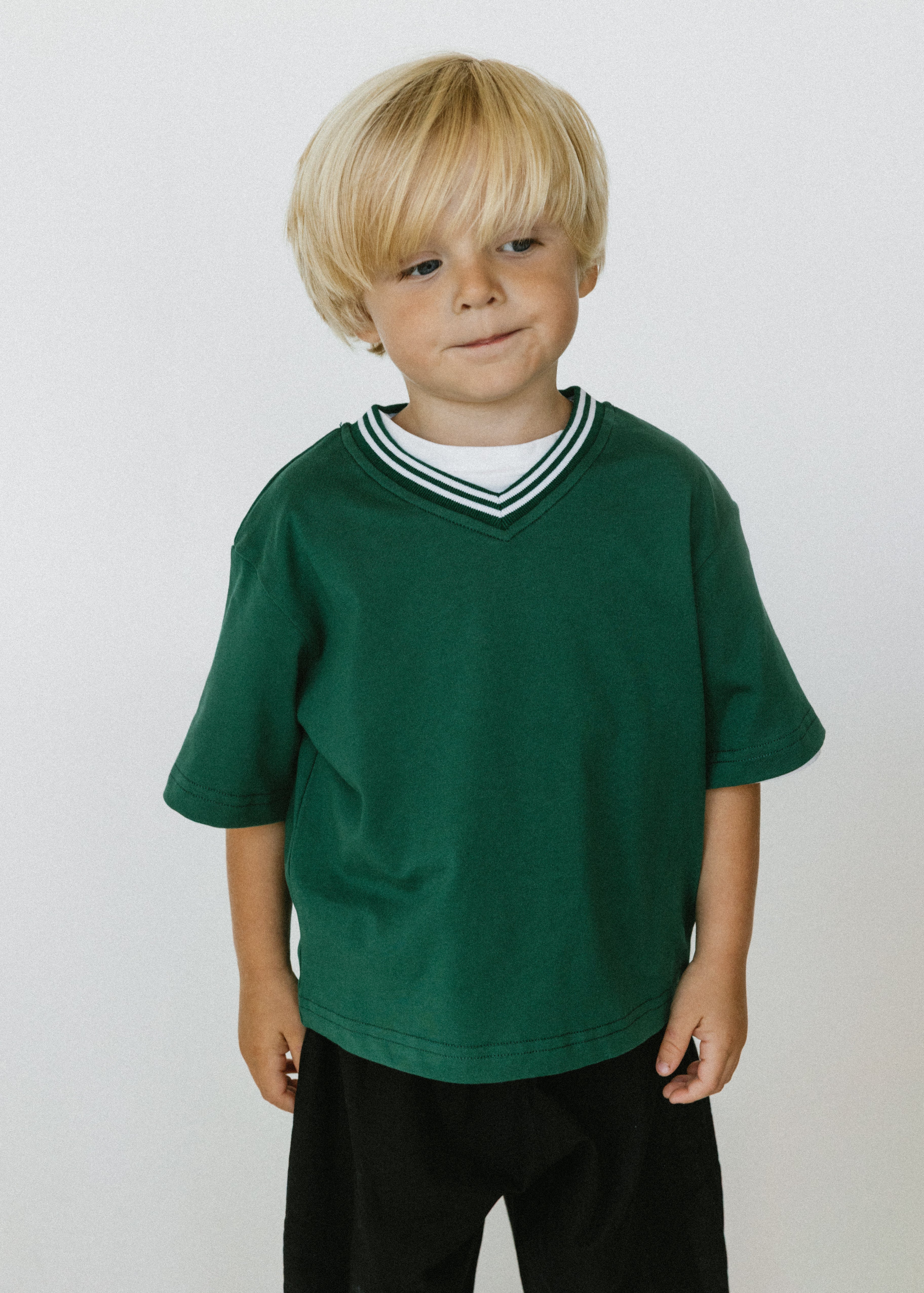 • Evergreen colored shirt with ribbed v-neck detail