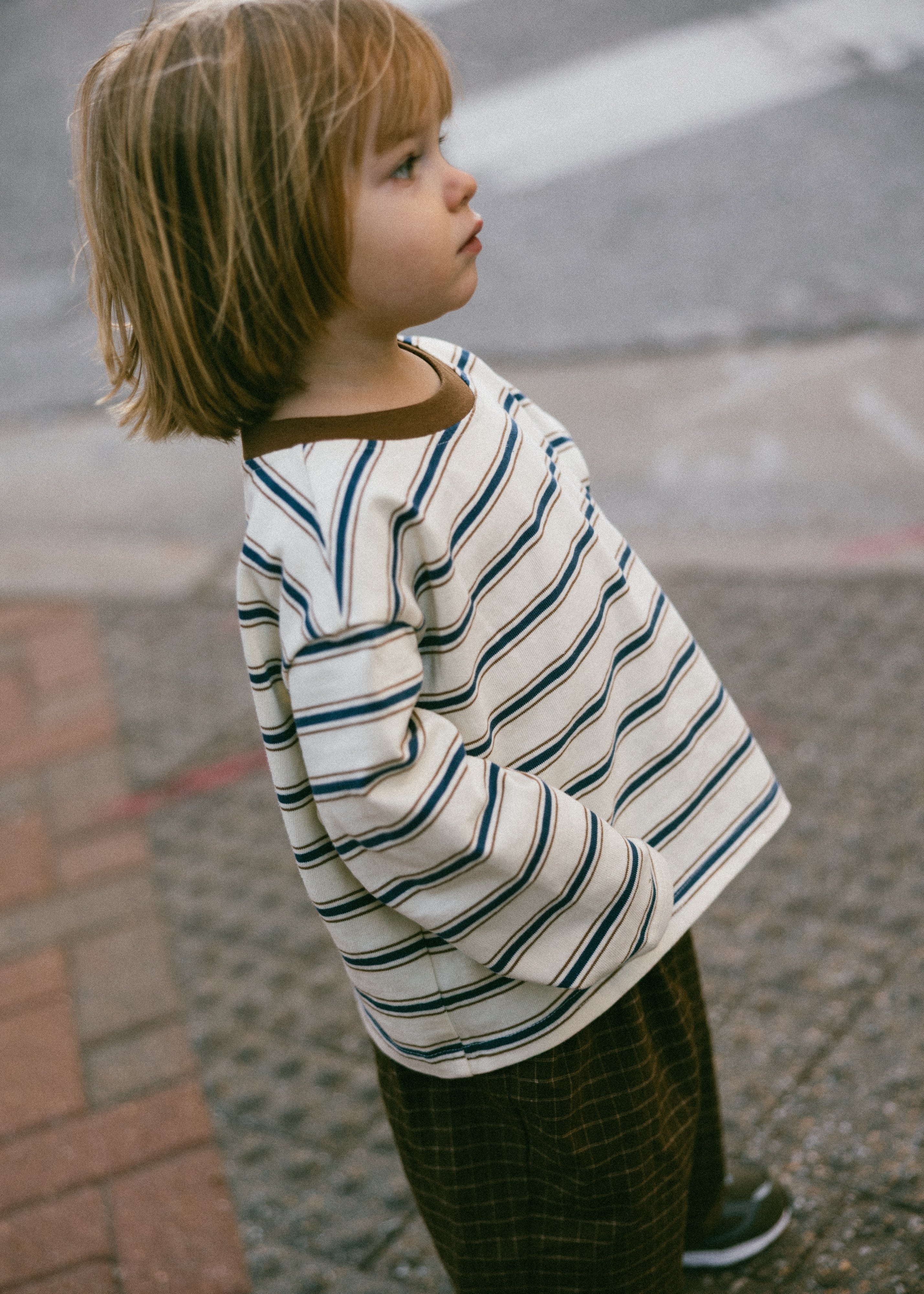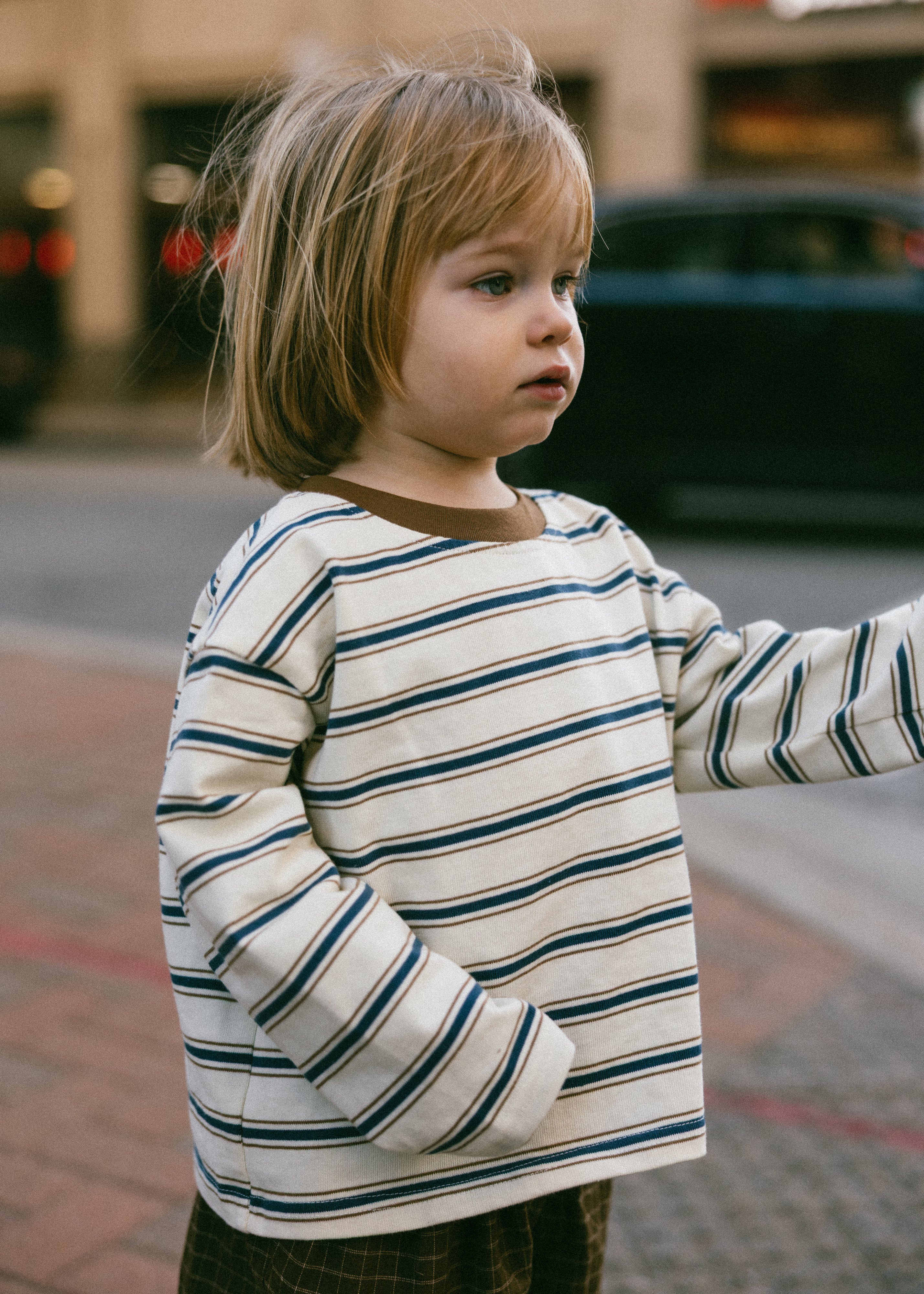 Striped Contrast Collar Long Sleeve- Ivory