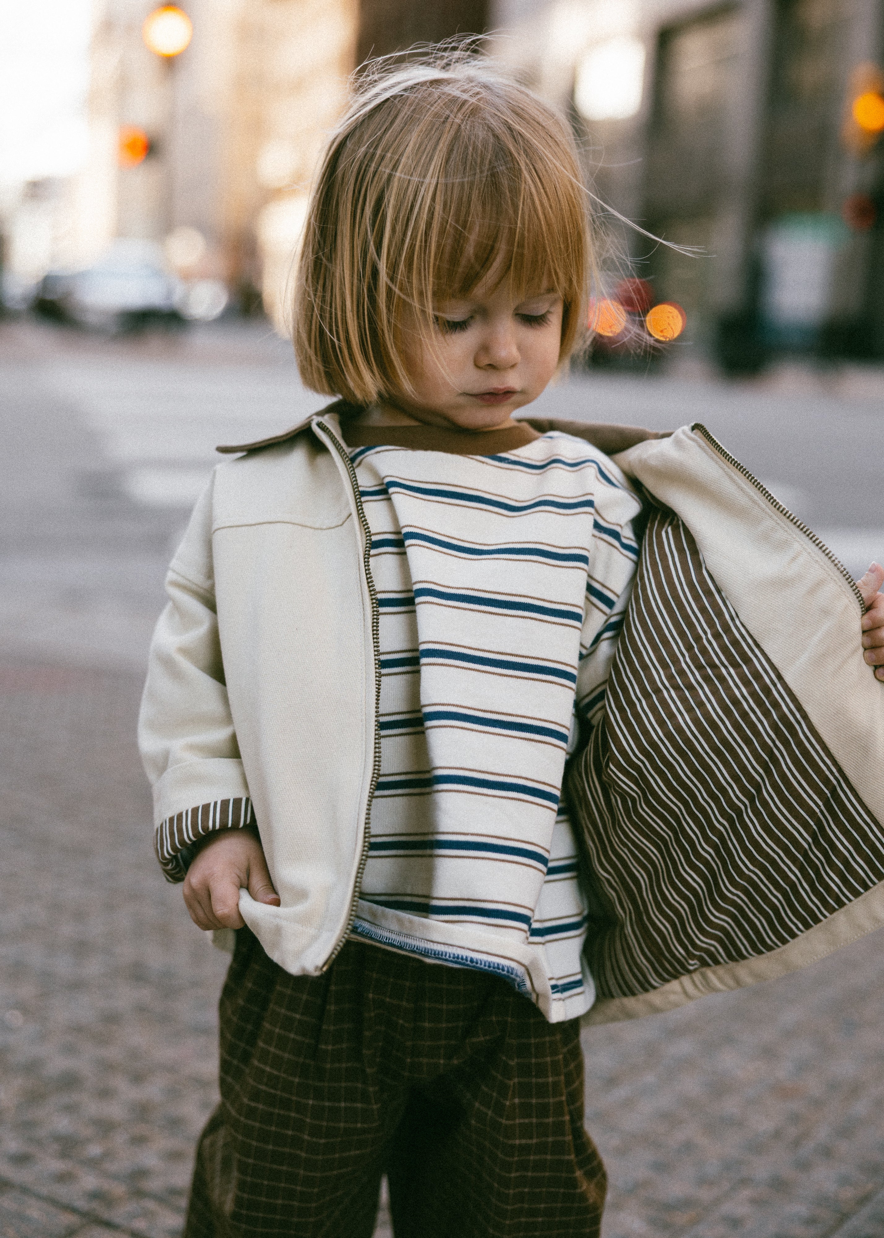 • Ivory, light brown, dark blue stripes