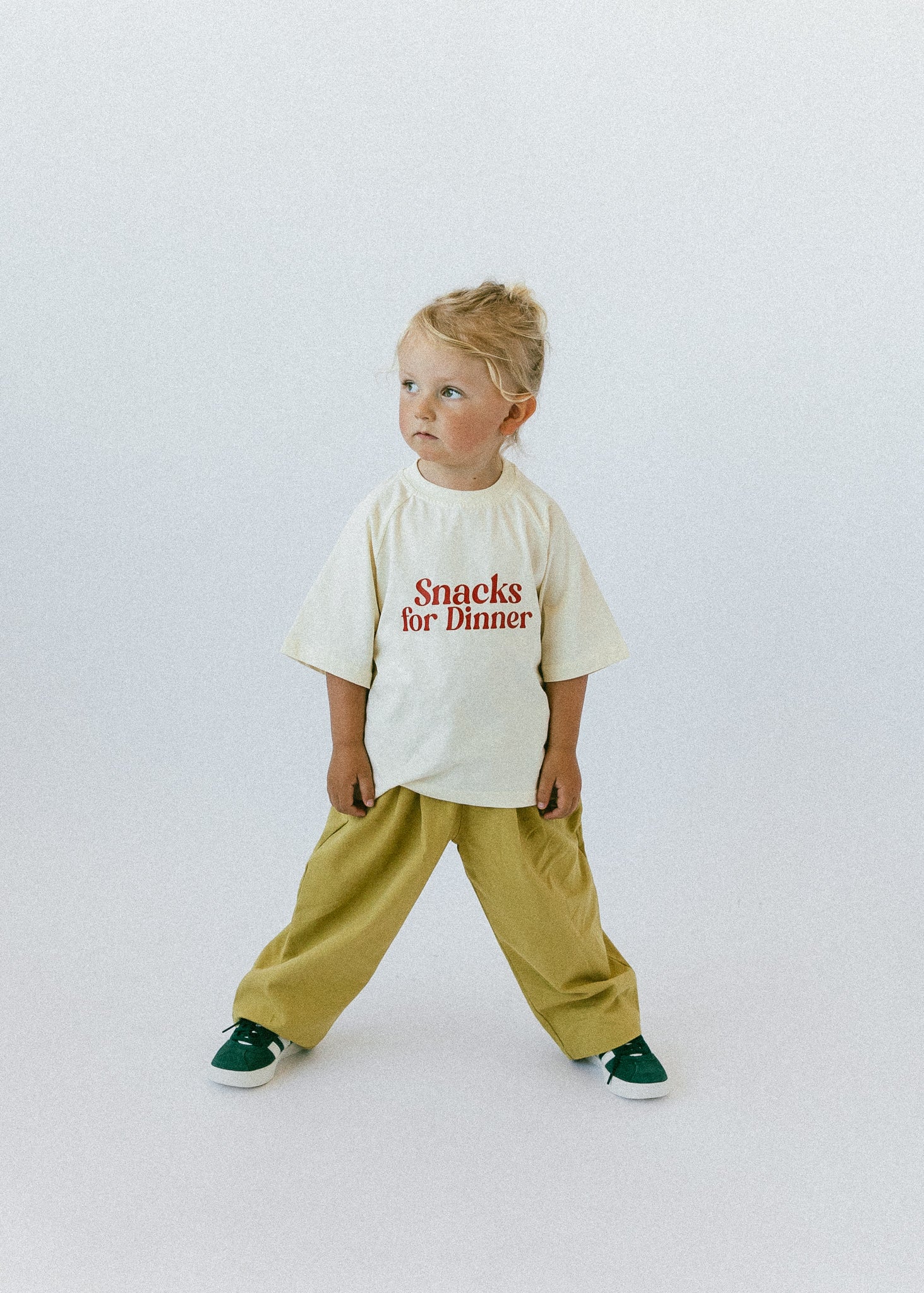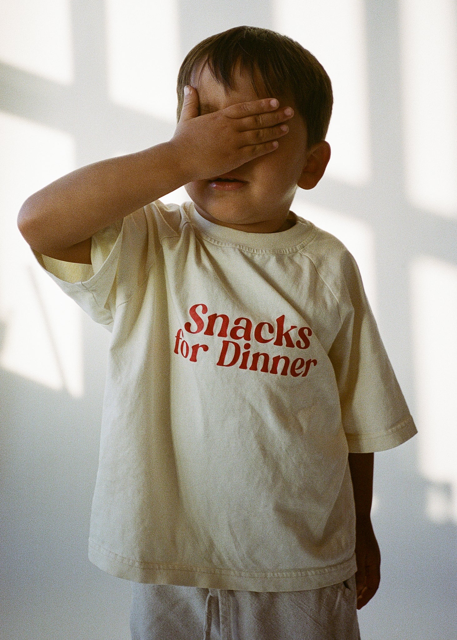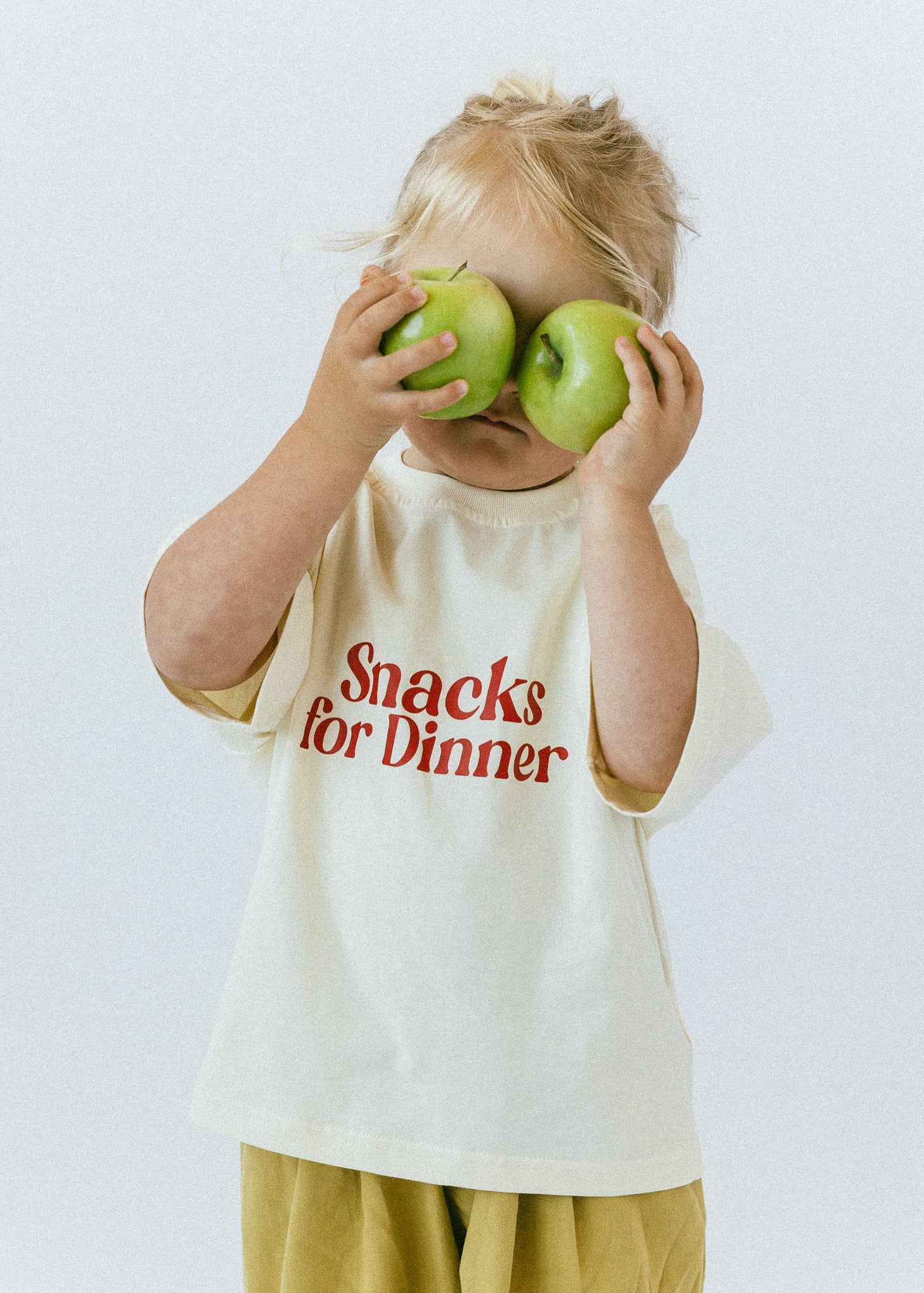 • Red lettering “snacks for dinner”