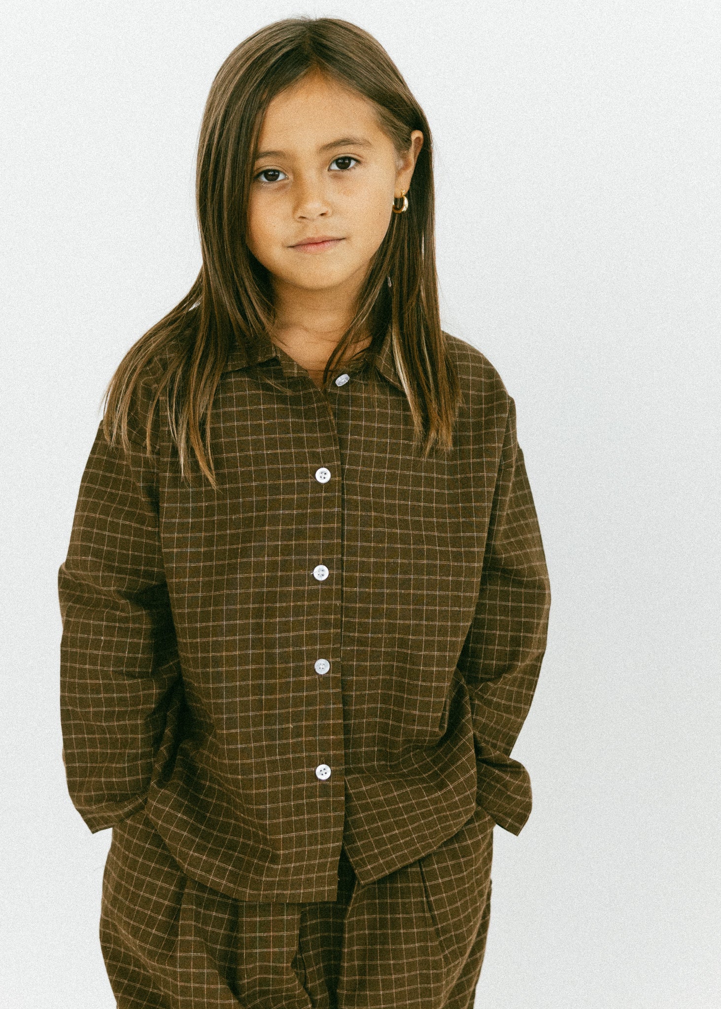Grid Button Up- Brown