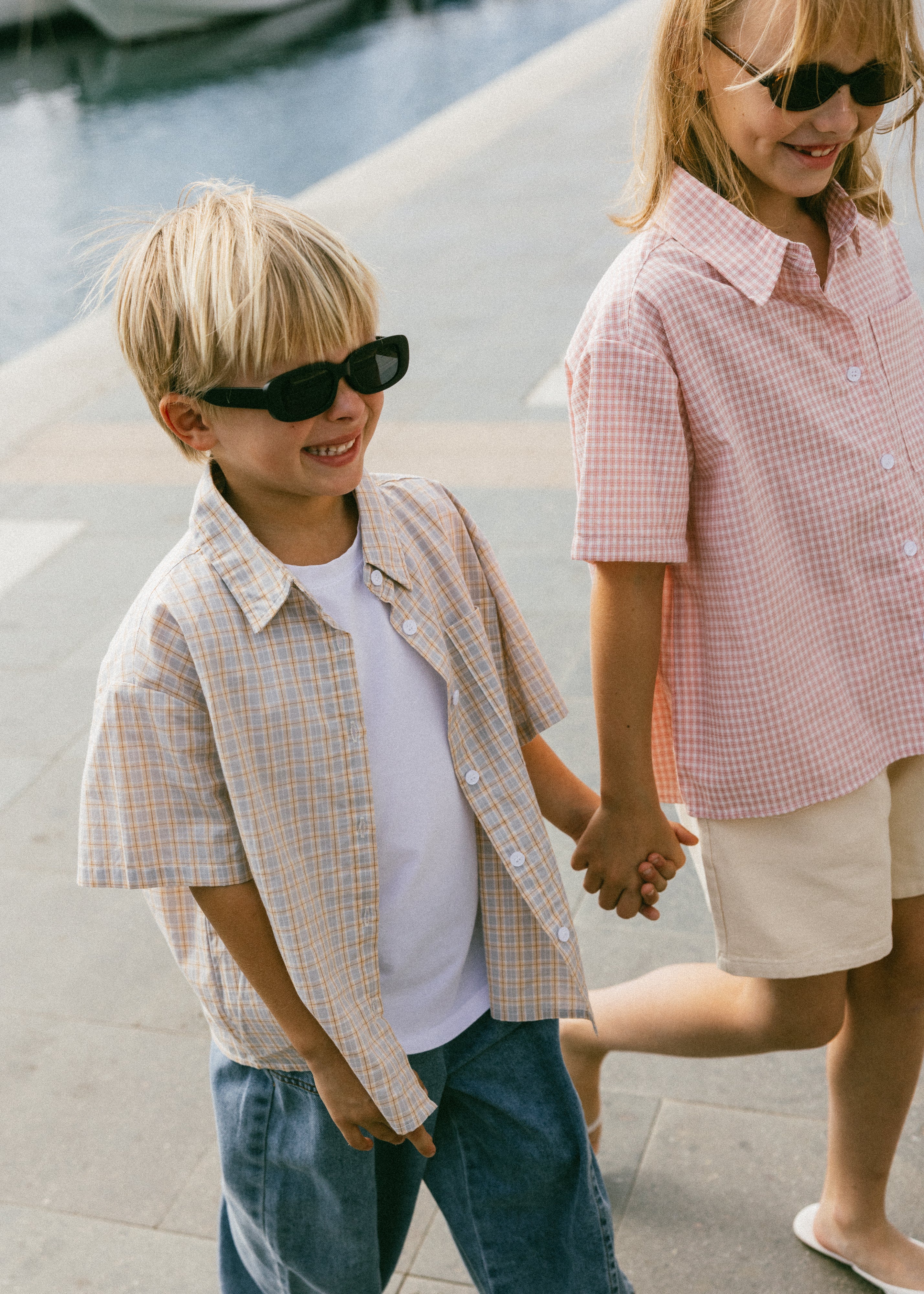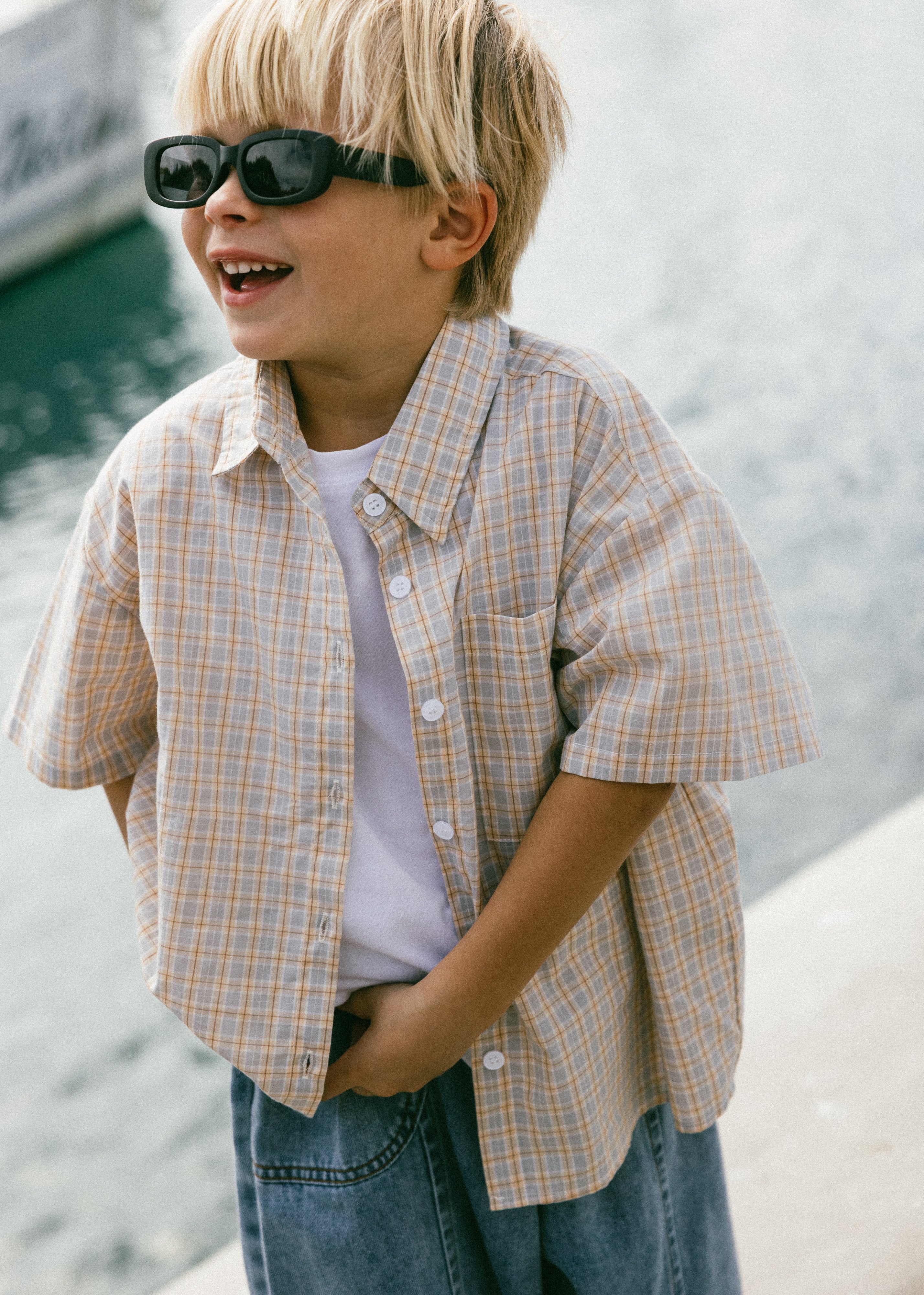 Boxy Button Up- Gray & Papaya