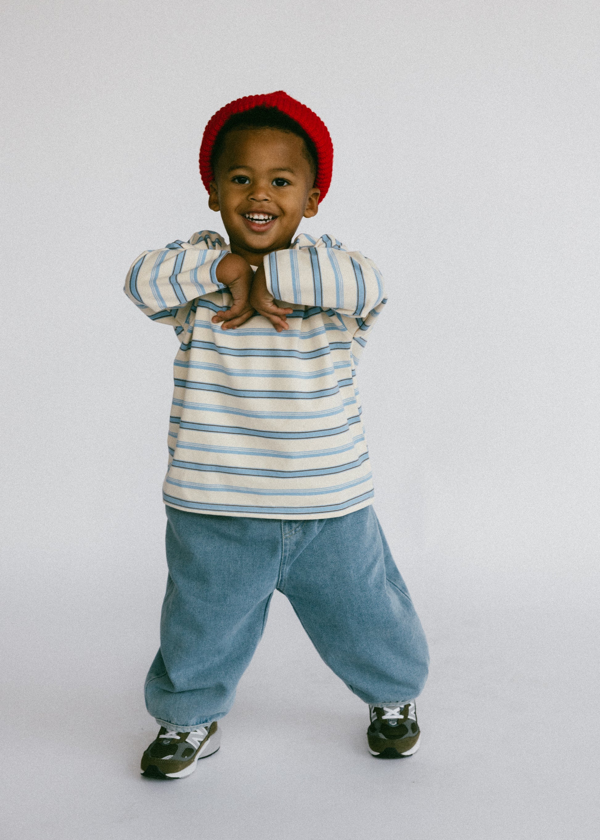 Long Sleeve Striped- Ivory and Light Blue