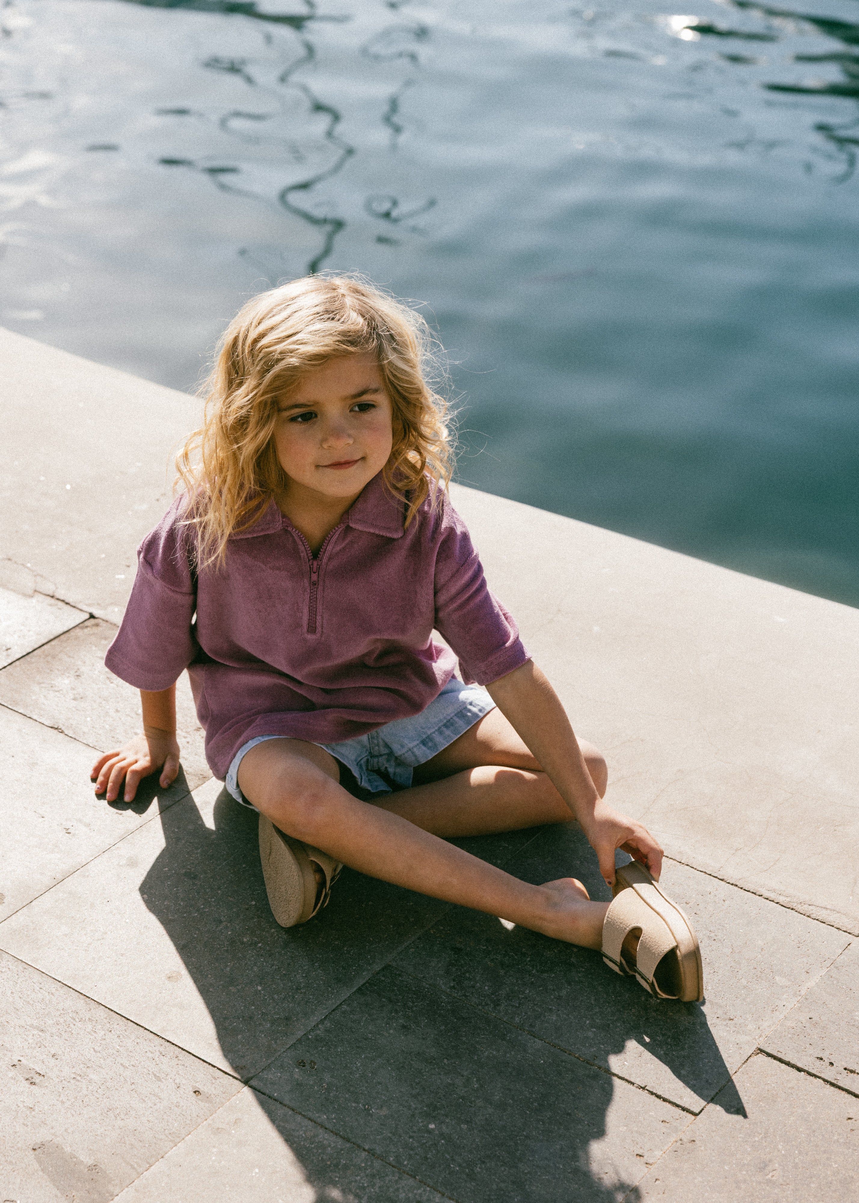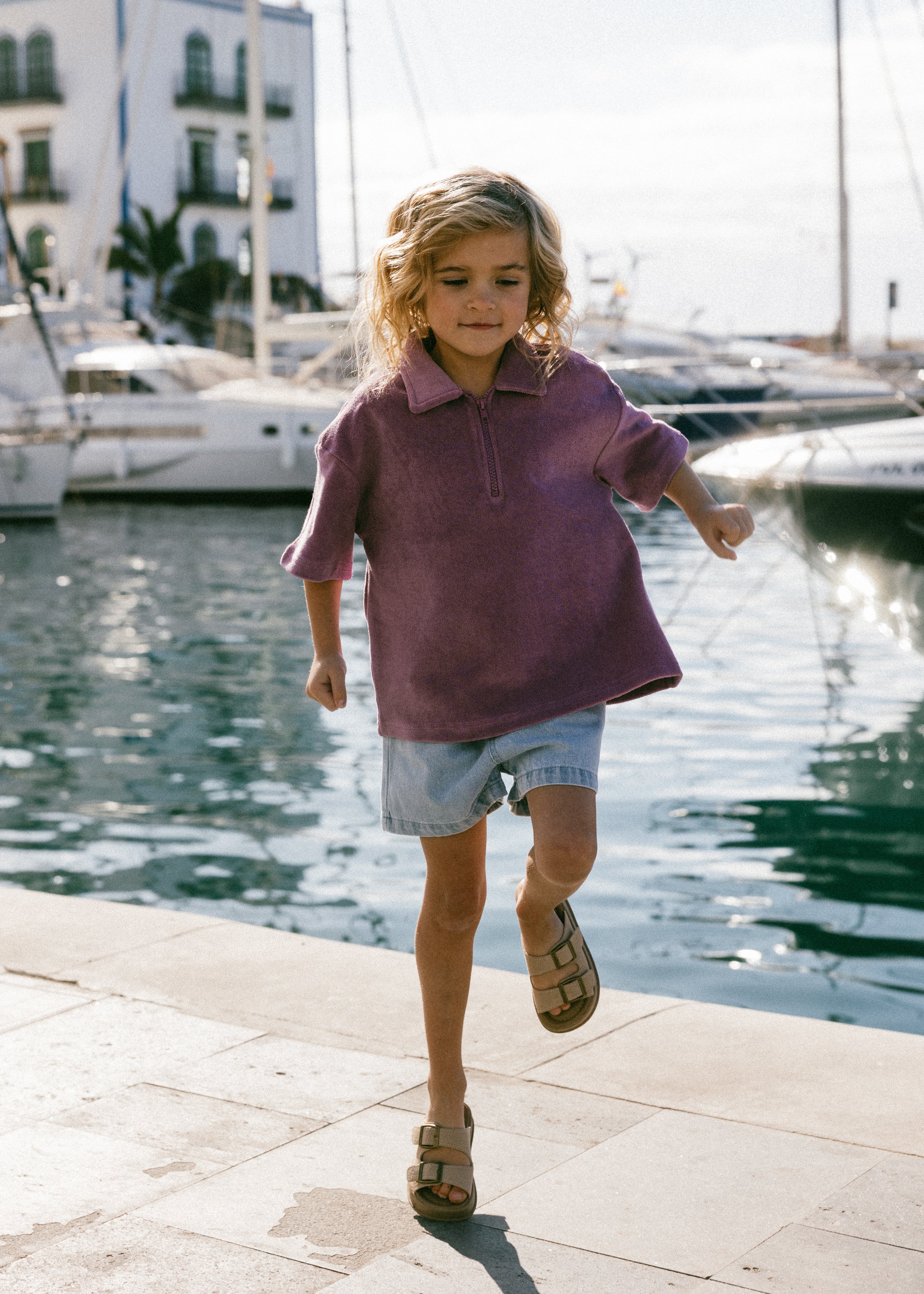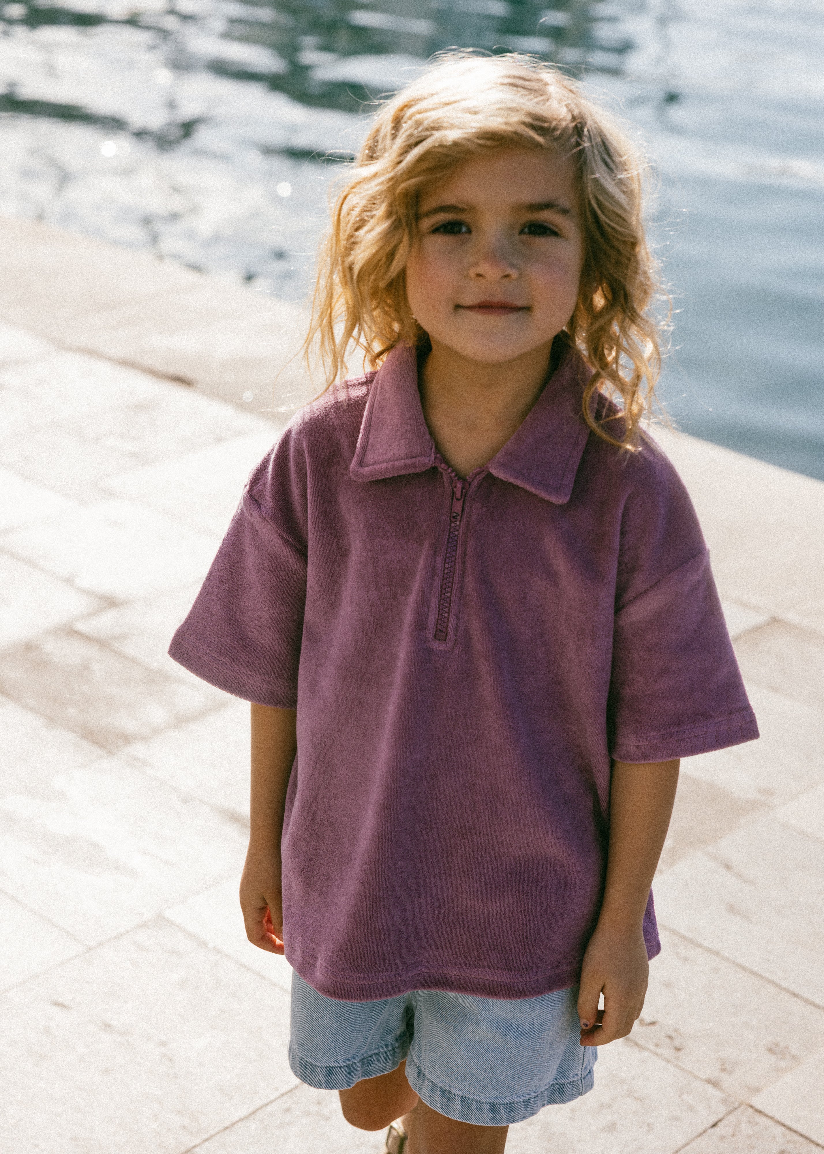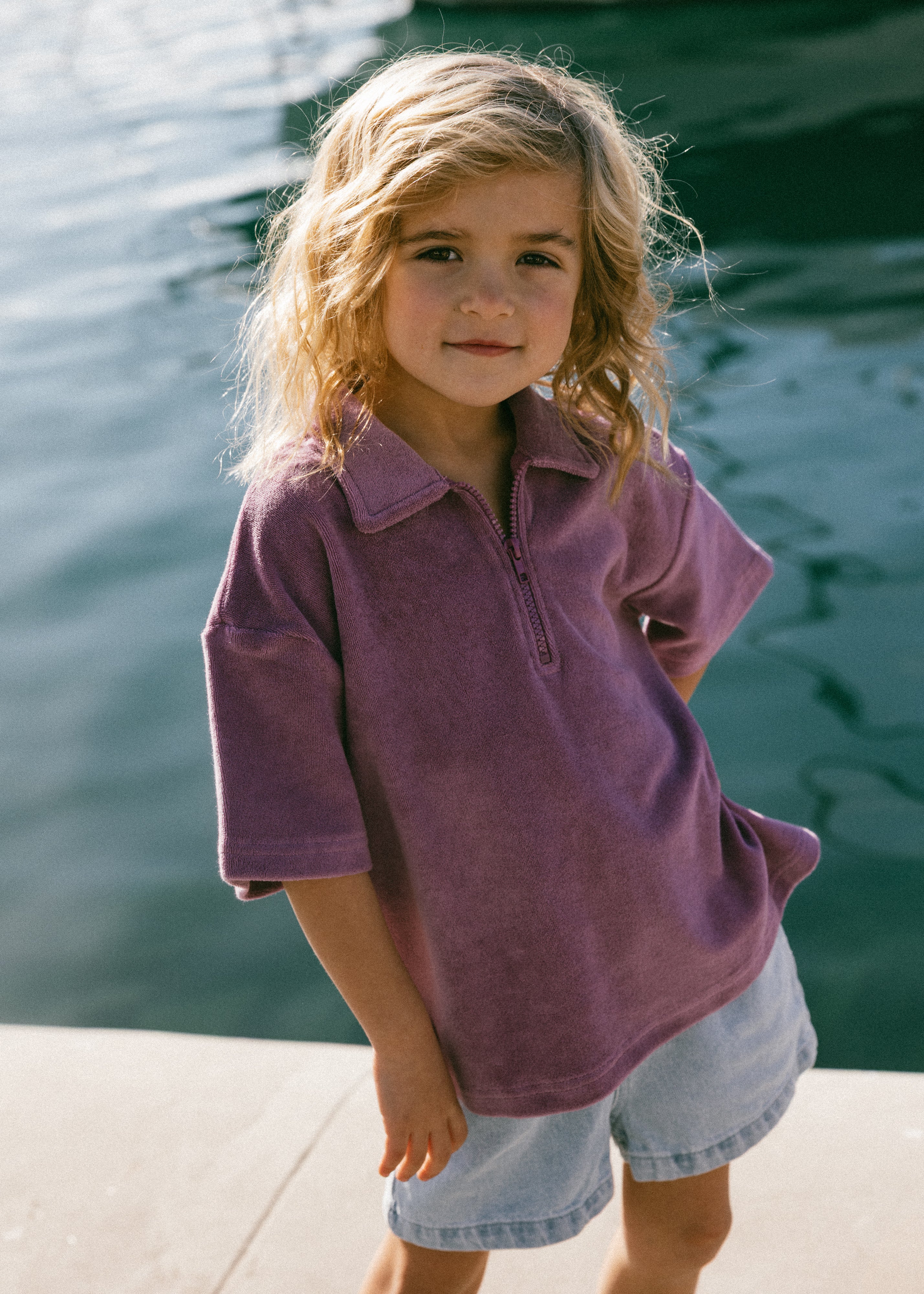 Terry Zip Polo- Mulberry