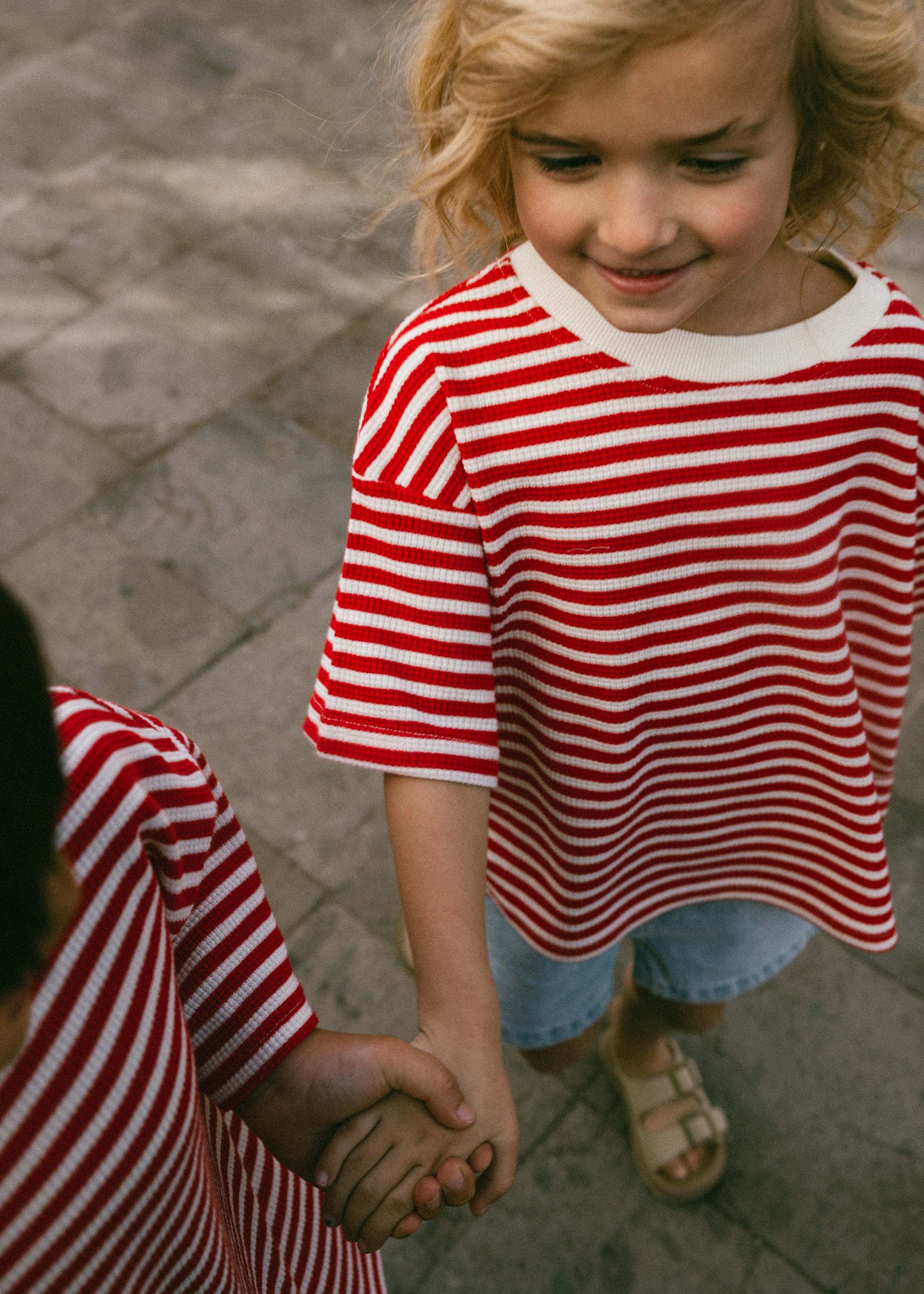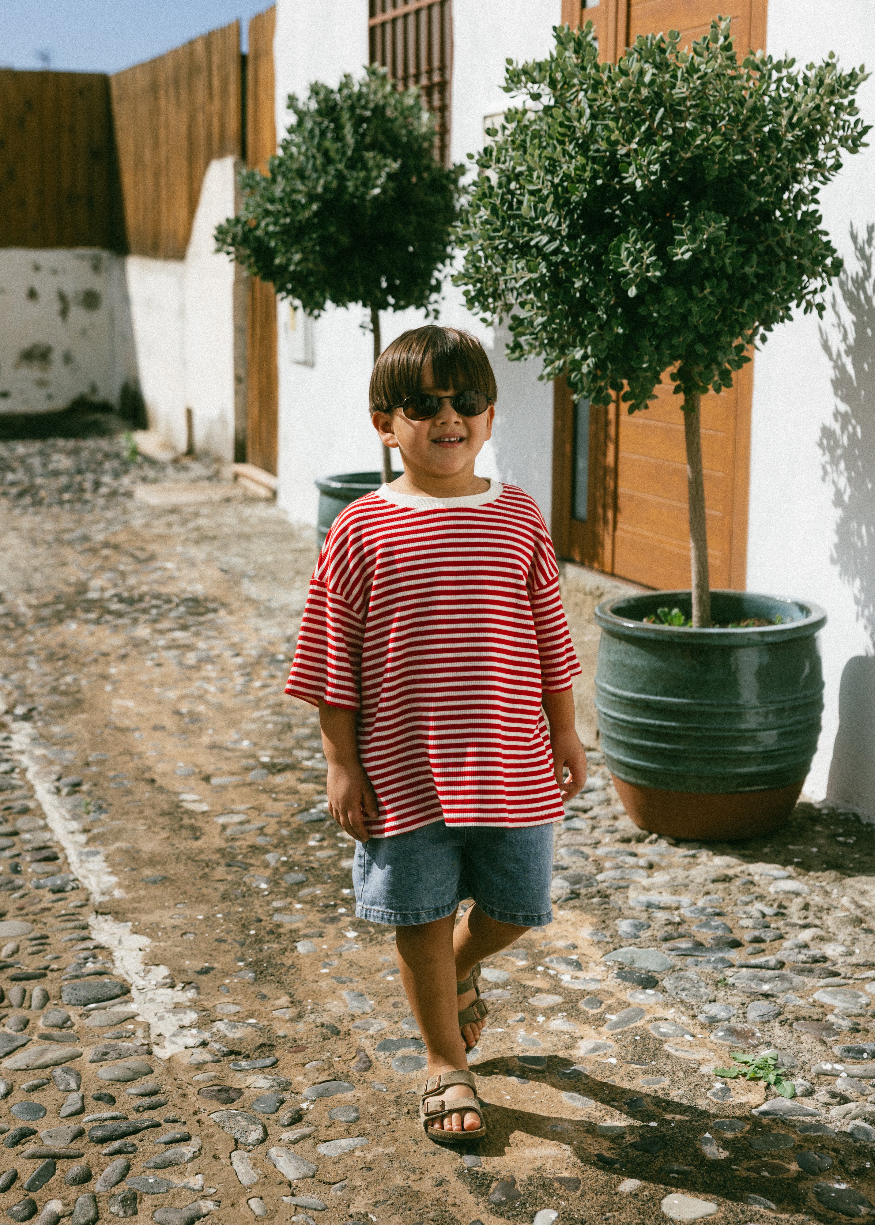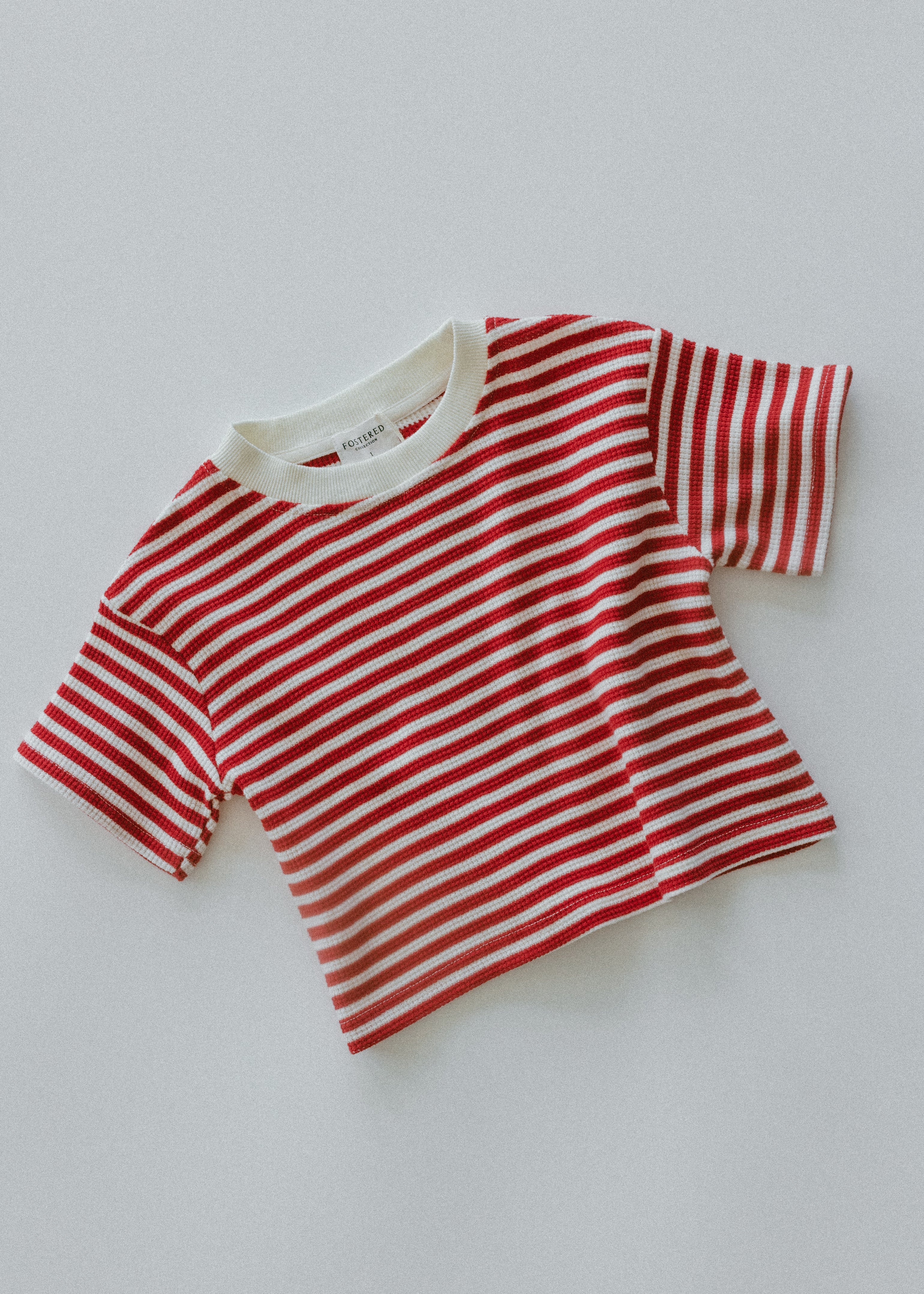 Waffle Stripe Tee- Red & Cream