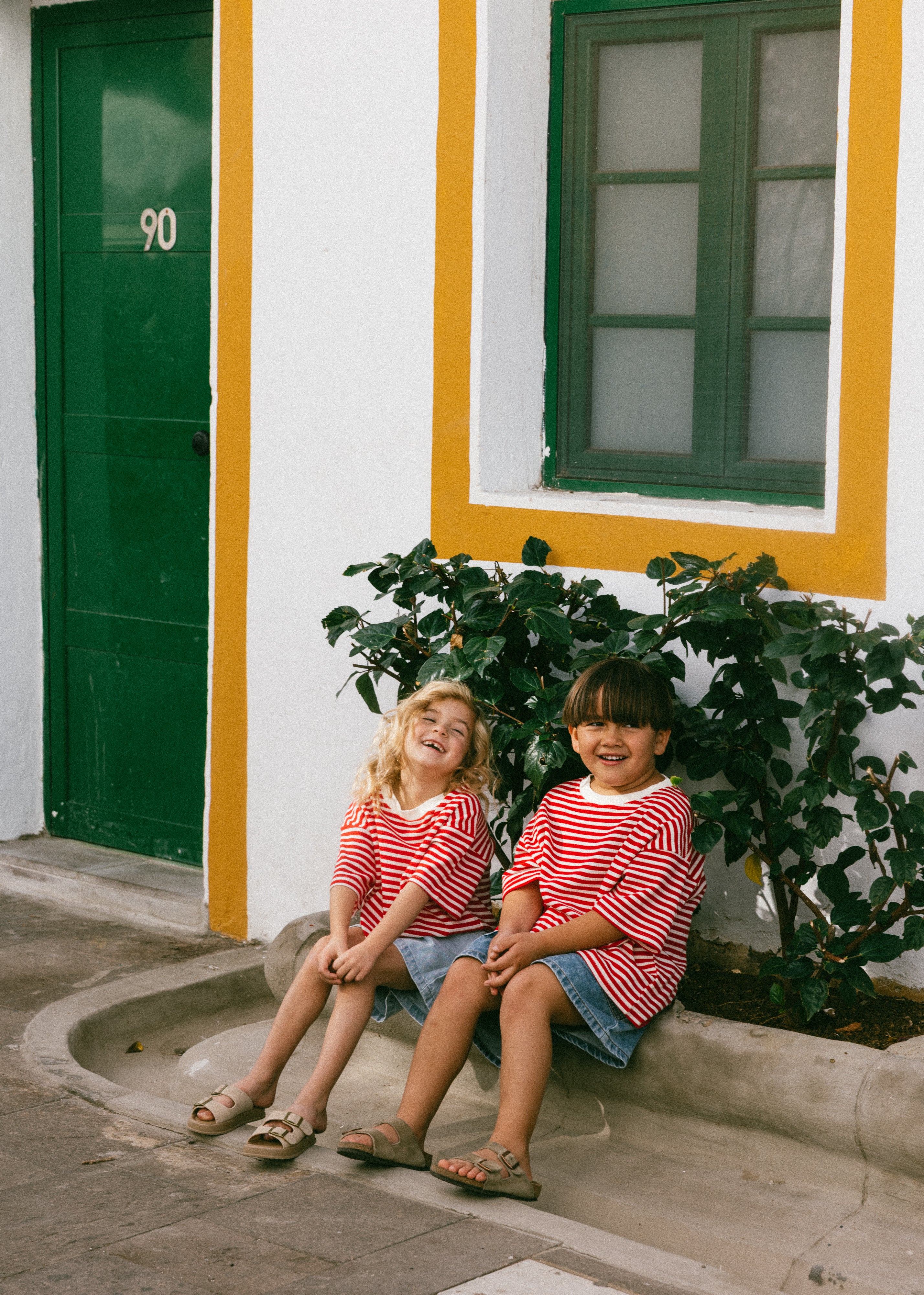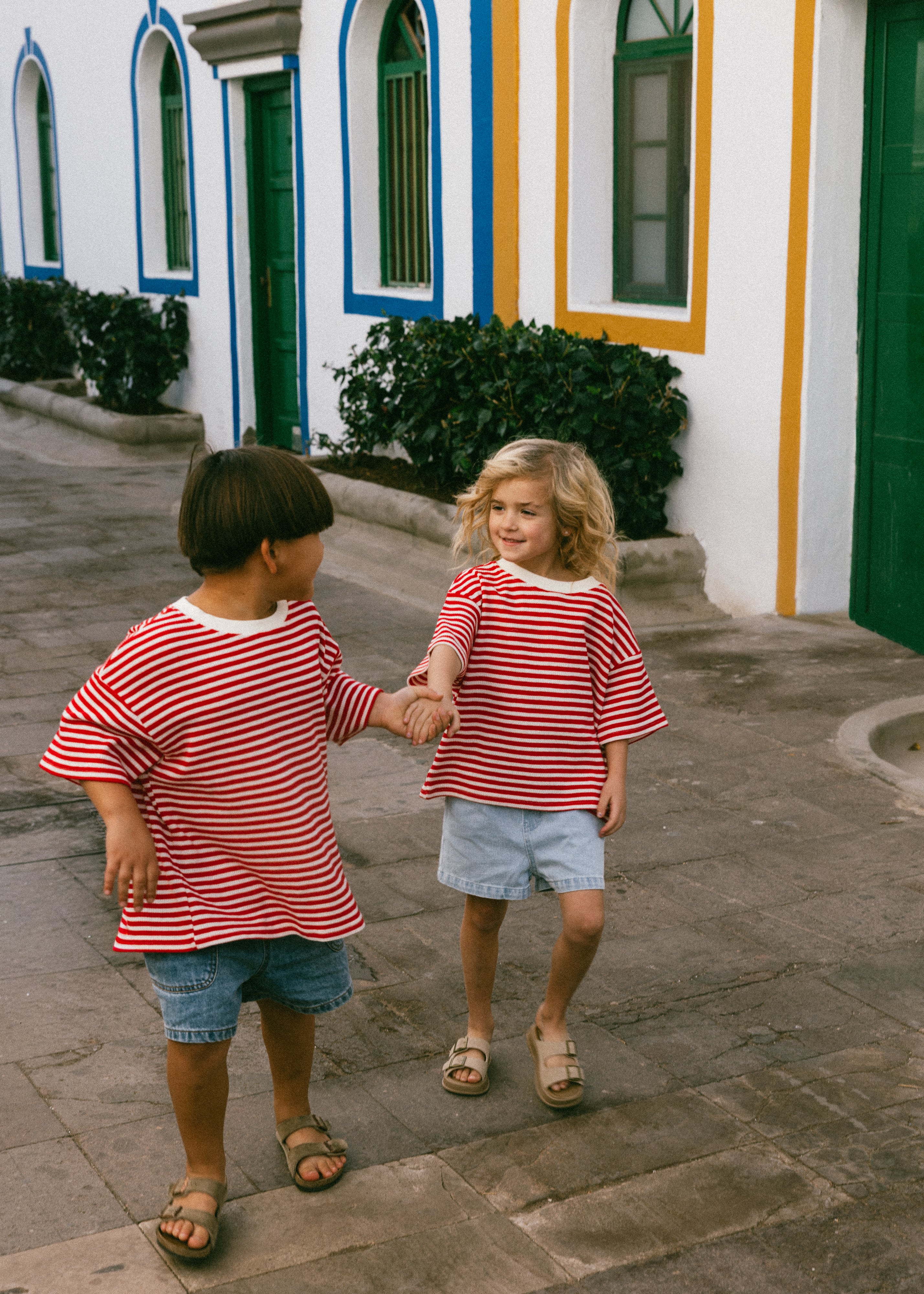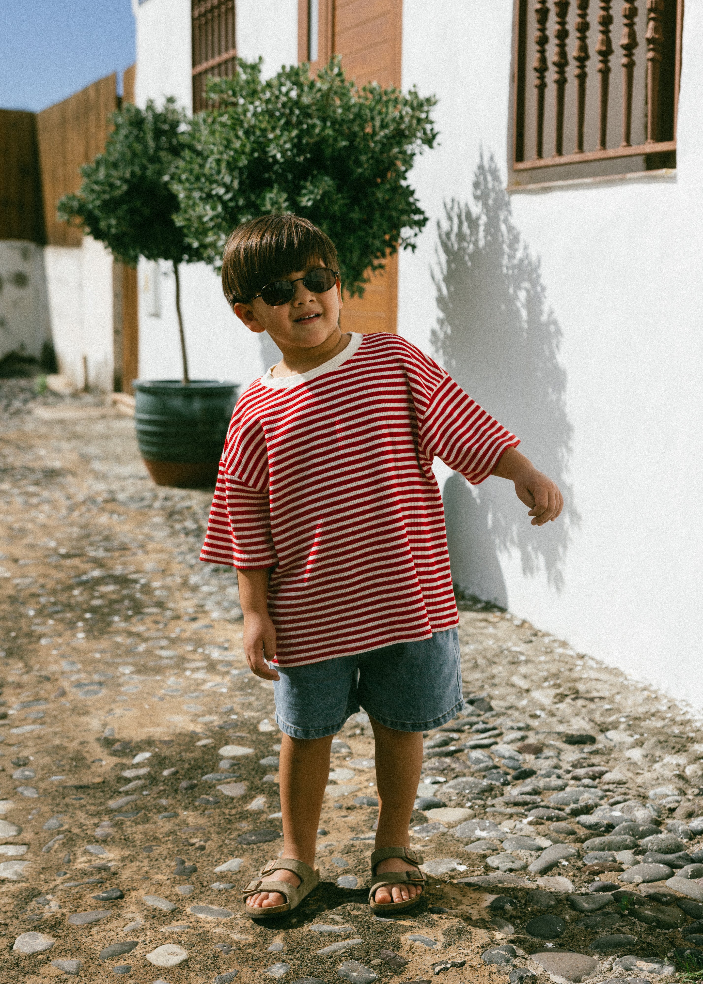 Waffle Stripe Tee- Red & Cream
